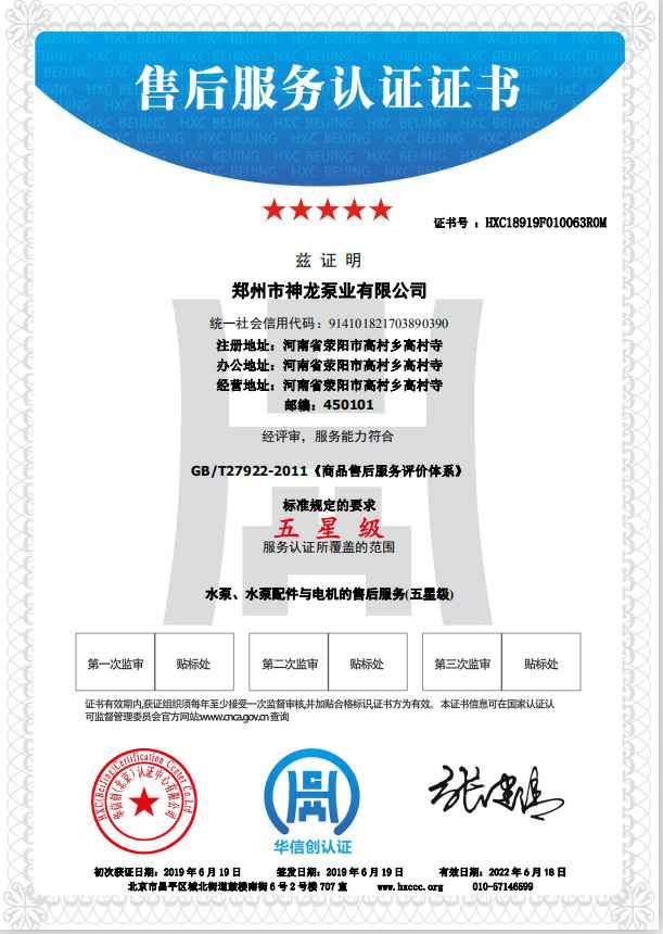 祝贺三亚书杰环境科学技术有限公司获得水泵、水泵配件与电机的五星级售后服务认证。