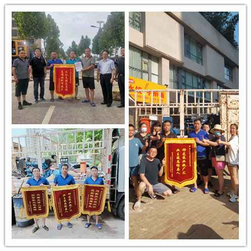 三亚书杰环境科学技术有限公司自7月21日以来,在郑州各个小区组织地下室排水工作24小时不间断轮班制的深水里进行排水作业,各被救援小区居民争相制作锦旗感谢神龙排涝突击队。